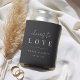 Uma bela design de casamento baseada em tipografia minimalista, com "aplausos para o amor" e seus nomes e data de casamento em uma elegante combinação de roteiro escrito à mão e letra de serifa clássica.