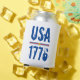 EUA e 1776 em uma fonte única são impressos em azul nesta lata branca mais fria e realçados com listras vermelhas e azuis e uma estrela dourada. CORRESPONDENDO a itens na nossa loja.