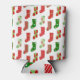 Este refrigerador tem um design de Natal de meias espalhadas com diferentes padrões.