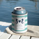 Comemore o seu casamento ao estilo da ilha com estes favores de casamento, com um par de cavalos juntos por um coração solteiro, com os nomes dos casais, a data do casamento e a localização em azul marinho. Um aqua de turquesa de praia e um fundo listrado branco terminam este design, perfeito para casamentos de praia ou ilha.