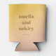 Este cooler de latas apresenta um design de gradiente pastel suave com os nomes do casal personalizados e a data do casamento centralizados em uma tipografia minimalista e limpa. A mistura de cores ombre cria um visual moderno que se destaca no bar de uma recepção de casamento, festa de noivado ou jantar de ensaio. Projetado para celebrações de primavera e verão, combina perfeitamente com um visual preppy e decoração colorida. Uma lembrança de casamento personalizada que os convidados podem usar durante o evento e levar para casa como um souvenir.
