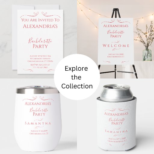 Esta é uma design mínima, Festa de solteira. Está em tendências em vermelho/ rosa com na moda tipografia / texto. Tem a mensagem, "Festa de solteira de Alexandria", e espaço para você adicionar o nome do seu convidado, data da festa e local. O texto é enquadrado por corações de na moda. Esta design elegante e moderna é perfeita para a celebração da Festa de solteira e é ideal para favoritos para festas ou acessórios. Basta digitar seus detalhes usando a caixa personalizar este texto. Aqui você também pode mudar o resto do texto se quiser. Para alterar a cor ou a fonte, dê uma olhada na ferramenta de edição de design. Se precisar de ajuda para personalização ou para um projeto personalizado, entre em contato comigo por meio de bate-papo zazzle ou email: ursuladawnmoon@gmail.com