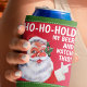 O Pai Natal Cômico "segura a minha cerveja e vê isto" pode refrigerar as festas de férias! Ilustração de Papais noeis de estilo Vintage sorrindo com seu braço enlutado apontando em direção ao céu onde em alguns minutos ele pode mostrar suas habilidades de sono. Fonte branca nítida que diz: "Ho ho segura minha cerveja e vê ISTO!" com uma borda verde em vermelho com costura falsa. Cobrir engraçados mantêm suas latas boas e frias nesta temporada de festas. Excelente a presente como favoritos para festas para o cesto de férias deste ano. Tenha um Feliz Natal!