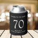 Levante um brinde na sua festa de aniversário 70 com esta lata preta que apresenta "Saúde aos 70 Anos" e o seu nome em simples e moderna carta branca.