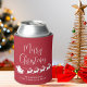 Vermelho e branco sazonais divertidos podem resfriar para suas festas de Natal e decoração de mesa que apresenta renas voando Papais noeis de trenó por ar, "Feliz Natal" em uma escrita branca moderna e seu nome ou evento em uma simples tipografia.