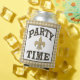 Jazz sobe seu cozinheiro de graduação ou lagosta ferve com estes resfriadores de latas com as palavras FESTA HORA em um design preto e ouro divertido Fleur de Lis. As costas deixam espaço para a sua personalização e lê DEIXE OS BONS TEMPOS ROLAREM. Guarde este texto ou personalize-o. Perfeito para você, festa de formatura de Nova Orleans!