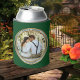 Pode resfriar com fotos personalizadas na frente e atrás, moldadas em círculo em ouro com verde. Bonito como presente de casamento ou guardar e personalizável para qualquer outra ocasião.