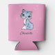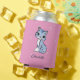 Porta-lata Gato azul bonito com nome personalizado rosa