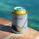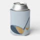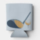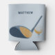 Keep your hands dry while keeping your cool with this personalized can sleeve. The light blue can holder features realistic style illustrations of a golf club and golf ball in shades of blue and gold. The front side has a spot to add a name or other custom text is matching navy blue.