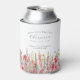 Perfect table decor for an August birthday party. Pink gladiolus is the birth flower for that month. It forms a pretty watercolor bottom border on this floral personalized can cooler. The birthday guest of honor's name, age and birthdate are placed above it using elegant calligraphy and typography. All text is editable.