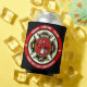 Departamento de Bombeiros ADICIONAR NOME Bombeiro Insígnia de Bombeiro desenho - Emblema com Capacete e Machado. Personalize com seu Nome, Número da Estação/Departamento e localização.