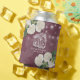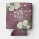 Modelos de Cooler / koozies para Chuveiro de Noiva - Escrita Elegante, Jarras de Mason, Flores de Hortênsia e Luzes de Corda em Fundo de Linho Floral Vermelho Borgonha.