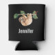 Pode resfriar com uma preguiça adorável pendurada de cabeça para baixo de um galho de árvore. Ramo de árvore é decorado com folhas e bagas tropicais.