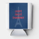 Engraçado reviravolta no famoso francês "Liberté, égalité, fraternité" para amantes de vinho: Liberté, Égalité, Chardonnay! Saúde, faça uma festa de bebendo de vinho excelente ou só uma noite relaxante em casa. Letras vermelhas e negrito sobre fundo azul, com a Torre Eiffel visível de Paris. Cercado por um quadro branco para representar as cores da bandeira francesa.