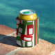 This can cooler has a mid-century modern Christmas design of lines and rectangles in retro shades of red and green.