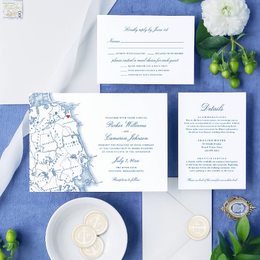 Este marinho azul de design, o mapa do MÃE é o ajustado perfeito, seja você se casando no Clube do Rio, Barker House ou Peggoty Beach. Apresentando tipografia de eterno e roteiro elegante e um belo mapa antigo da margem Sul. Este mapa de Massachusetts inclui a costa a sul de Boston, incluindo Weymouth, Hingham, Cohasset, Scituate, Norwell, Hanover, Rockland, Hanson, Pembroke, Marshfield, Duxbury e Halifax. Trabalho de arte por Designs de Mapa Costeiro.