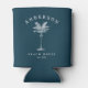 Marinho Blue Simple Palm Tree Beach House Can Cooler apresenta uma ilustração da palmeira vintage, junto com seu sobrenome.