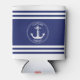 Estes refrigeradores mantêm suas bebidas bonitas e frias no seu dia na praia ou churrasco familiar. Este design apresenta uma âncora branca com uma borda circular de corda e três listras horizontais brancas na parte superior e inferior sobre um fundo azul marinho. Personalize com um nome em tipografia branca. O fundo azul do marinho pode ser alterado para outra cor personalizando e selecionando outra cor de fundo.