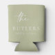 Estes verdes-sábios personalizados, refrigeradores/koozies são perfeitos para um janto de casamento, festa de noivado, chá de panela ou ensaio. O design apresenta a cor verde com fontes simples e modernas. Personalize-os com seus nomes e data do evento para torná-los um tipo