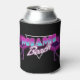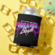 Ilustração do design de texto "Miami Beach" com flamingos e decoração de triângulos em cores azuis, brancas e cor-de-rosa vibrantes em fundo de meio-tom