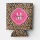 Porta-lata Monograma Personalizado de Impressão Rosa e Leopar