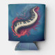 Music in motion, the curved piano. The keyboard consists of classic white and black keys, clearly separated from each other and set against a dark frame. This frame creates an elegant contrast and highlights the keys. A dynamic, artistic element unfolds around the keyboard: flowing shapes in vibrant red, purple, and gray tones seem to creep out from the keyboard or surround it. These shapes are curved and organically designed.