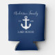 Na moda Caligrafia Script Náutico Lake House Nome Da Família Anchor Marinho Blue Can Cooler