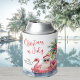 Celebre a estação com esta festiva e brincalhona manga mais fria, perfeita para um ensolarado Natal em julho. A design mostra um Papai Noel relaxado em óculos de sol flutuando em um flutuador rosa de piscina flamingo, cercado por ondas do oceano e detalhes tropicais — acrescentando uma reviravolta divertida à celebração do seu tempo quente. "Natal em julho" é apresentado no topo de uma combinação ousada de fontes pretas e vermelhas, enquanto o nome da família aparece no canto inferior esquerdo para um toque personalizado. Todo o texto, fontes e cores podem ser personalizados para corresponder ao tema do seu partido. Um detalhe divertido e funcional para o seu cesto de férias tropical, estas latas de refrigeradores são excelentes para festas de praia, bebidas ao lado da piscina ou comemorações de quintal.