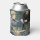 No Conservatório. Edouard Manet. Retrato de grupo em tons verdes. Uma mulher está sentada em um banco no parque com um guarda-chuva em suas mãos e um chapéu fofo. Há um homem com barba atrás do banco. Reprodução de famosas imagens de arte no dominio público.