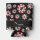Ideias de presentes de pôquer. Corações, espadas, paus e ouros em vermelho e preto com fundo preto e listras personalizadas com o seu nome, presentes monogramas ou suas iniciais.