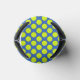 As bolas de tênis criam um padrão de bolinhas brilhante em um fundo azul na frente e na parte traseira dessa diversão podem resfriar os ventiladores tênis. Na frente, os raquetes de tênis também são usados em um padrão complementar, e há uma faixa azul para você personalizar com um nome ou outro texto.