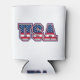 Este personalizado pode resfriar um design que exibe a palavra "EUA" em uma fonte impressão e letras vermelhas, brancas e azuis de sinalizador de Stars & Stripes em negrito, além de um contorno preto neste orgulho do tema EUA. Nossos resfriadores ajustados latas padrão de 12 oz e são personalizados em todos os lados, inclusive na parte inferior, e feitos com espuma de poliuretano de célula aberta de alta densidade e colapsível para armazenamento fácil.