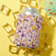 Padrão branco sem costura com laranja roxo grande e pequeno translúcido e bolas e tiras amarelas (EPS vetor 10) © e ® Bigstock® - Todos os direitos reservados.
