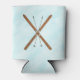 Escos cruzados de madeira e esquis sobrepostos a uma imagem de fundo de neve. Adicione seu próprio texto no verso.