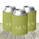 Porta-lata Retro Green & Ivory Monogram Wedding Can Cooler
