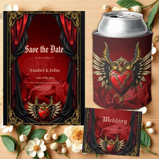 Romance Gótico, o coração da paixão. O elemento central do design é um coração vermelho vibrante, simbolizando paixão e romance. O coração é enquadrado por asas elegantes de ouro, transmitindo graça e liberdade. Por trás deste filme estica um fundo de uma rosa vermelha, incorporando amor e ternura. A interação desses elementos cria uma atmosfera cheio de paixão, elegância e um toque de misticismo gótico.