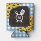 Porta-lata Rústico Azul Gingham Girassóis Monograma