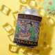 Kuna Indian mola, tropical islands, man in hammock, island monkeys, palm trees, San Blas Islands, Panama, Virginia Vivier, Vagabond Folk Art, black red blue, yellow orange green.