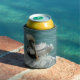 Depois de um bem-sucedido mergulho na água perto do fim do oceano do canal do navio, um pelicano repousa sobre uma pedreira de molhe à medida que a brisa de primavera ajuda a secar suas penas. Em Port Canaveral, Flórida.