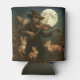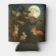 Uma cena assustadora com uma lua de cheio brilhando num campo de milho, Uma espantalho assustadora está tocando violino enquanto alguns animais olham, pequenas criaturas e uma coruja fazem parte dessa estranha foto do Dia das Bruxas.