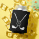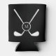 This bold golf illustration features crossed golf clubs with a central circular monogram, creating a sleek and sporty design with a modern edge on this small can cooler. The minimalist layout and high-contrast styling make the custom initial stand out, offering a refined yet athletic look. Ideal for golf-themed accessories and personalized gifts, this design blends classic golf symbolism with contemporary monogram style.