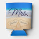 Sra. Beach Wedding Hearts in Sand Family Monograma: Can Cooler. Perfeito para uma despedida de solteiro, jantadas de ensaio ou outras festas de casamento.