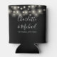 Um elegante favor de casamento preto e branco pode ser mais fixe com luzes bonito de cordas, nomes de guião de na moda e data especial definida na tipografia moderna. Projetado por Thisnotme©