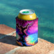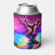 Um design de arte fractal com cores azul, rosa, roxo, branco e preto.