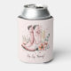Celebre a noiva de uma forma sulista com este cooler de latas personalizado para chá de panela com um design de aquarela de botas de cowgirl rosa, flores delicadas e uma taça de champanhe! Com texto personalizável como “Chá de Panela da Charlotte”, é o presente ou lembrancinha perfeito para a sua celebração western ou de tema rústico.