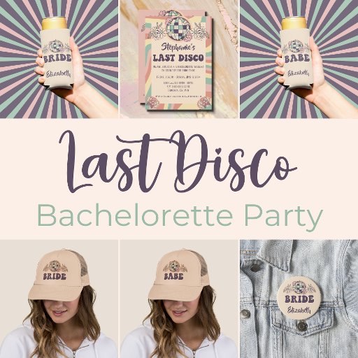 Este design de bebê ranzinza apresenta uma bola de discoteca dos anos 70, flores ranhosas, fontes retrô. É perfeito para as damas de honra usarem na festa de solteira. Procure o design da noiva correspondente para que todos os membros da festa de casamento possam combinar.
