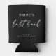Prepare-se para a celebração final com este elegante protetor de lata “Última Vela da Noiva” - o par perfeito para festas de barco, escapadas costeiras ou fins de semana de despedida de solteira com tema náutico. Seu fundo preto minimalista e tipografia moderna e elegante lhe dão um visual sofisticado e atemporal que se adequa a qualquer evento de noivado elegante. Ideal para noivas de praia, festas de iate ou casamentos de destino.