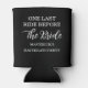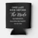 Prepare-se para celebrar com nosso resfriador de bebidas preto e branco "One Last Ride Before the Bride!" - perfeito para manter as bebidas geladas durante a melhor despedida de solteiro! Projetado com diversão e aventura em mente, este resfriador é o acessório ideal para o noivo e sua turma enquanto aproveitam sua última noite de liberdade. Com sua frase ousada e divertida, certamente vai fazer uma declaração e manter as bebidas fluindo a noite toda. Não perca essa peça essencial para a festa!