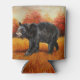 Um Urso Negro giro dando uma volta por um campo de folhagem clara de cor de queda.