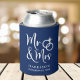 Dê uma torrada de casamento e seus convidados de casamento uma lembrança divertida mantendo seu dia especial com este marinho azul escuro personalizado pode resfriar com "Sr. & Sra." escrito em um grande roteiro branco e uma ilustração de dois anéis de casamento juntos. Adicione seu nome e data do casamento abaixo.